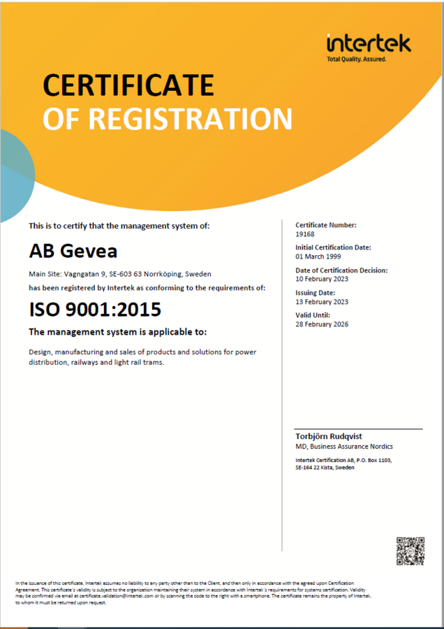 GEVEA offers leading products, solutions and services in disconnector and fuse technology, electricity distribution and materials for the railway that meet or exceed our customers' requirements regarding function, documentation, quality, environmental impact and energy consumption. Through their professional knowledge, experience and commitment, all employees contribute to our deliveries meeting our customers' expectations and requirements. We work continuously to reduce our environmental impact. We do this by working in a way that promotes reduced energy use, reduced amount of chemical substances and materials and minimizes our waste. Continuous improvement is a natural part of our everyday lives.